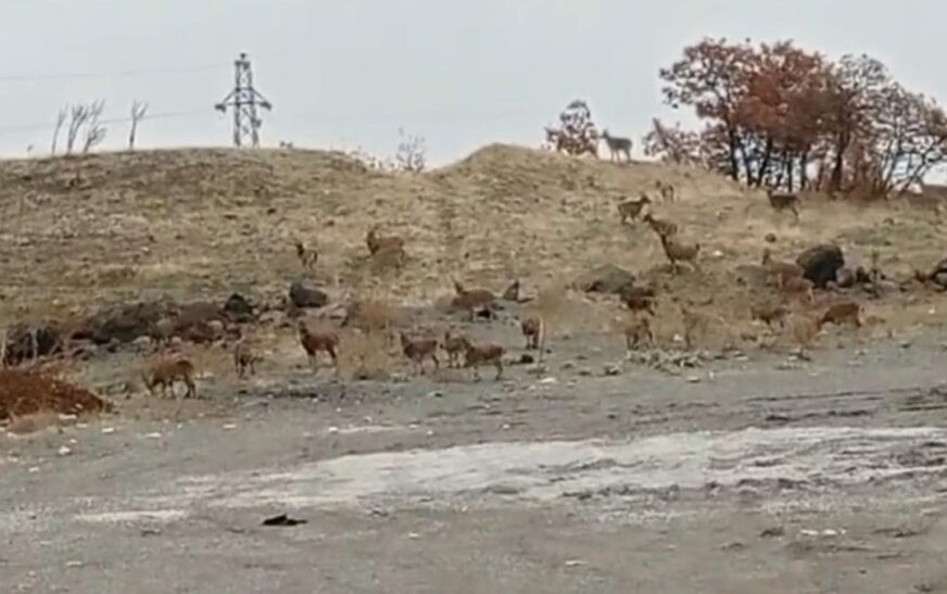 Tunceli'de, kuşağı tükenme tehlikesi altında olan yaklaşık 50 dağ keçisi yol kenarında yiyecek ararken görüntülendi.