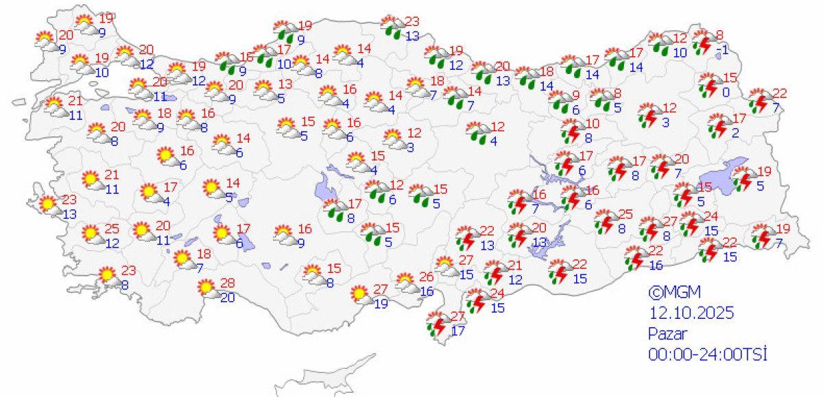 Pazar günü yağışların Karadeniz’in tamamında, Doğu Anadolu Bölgesi’nin doğusunda ve Güneydoğu Anadolu Bölgesi’nde aralıklarla devam edeceğini söyleyen Macit, yağışlı sistemin yurdu terk edeceğini bildirdi.