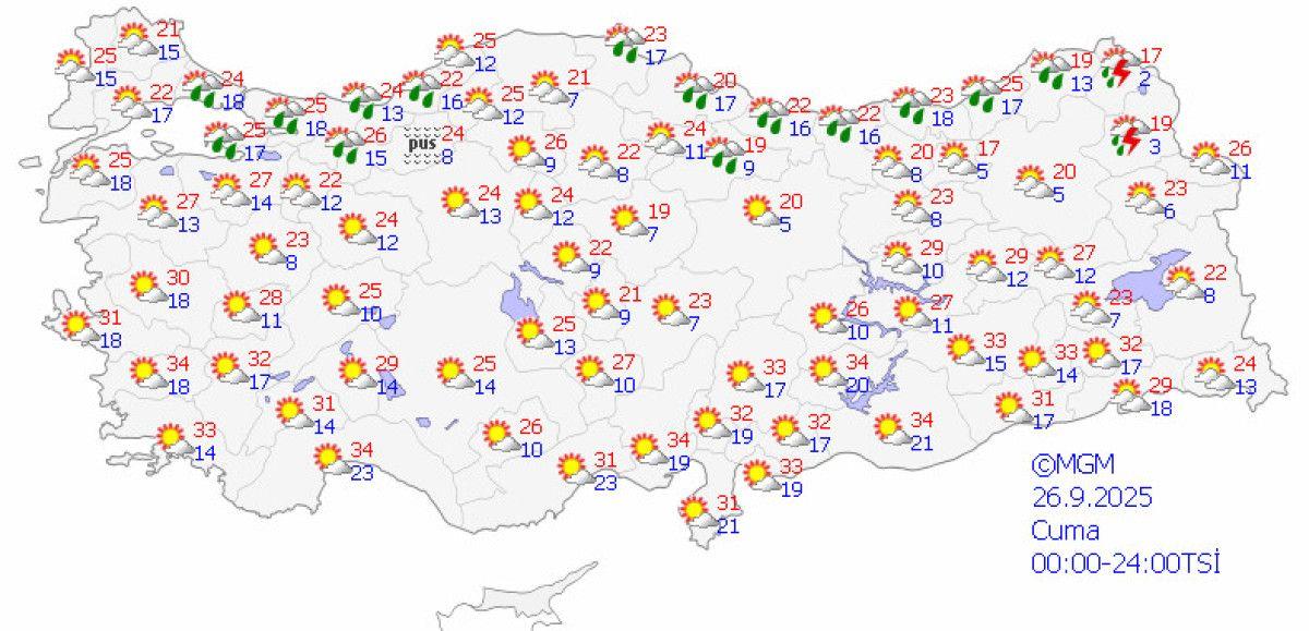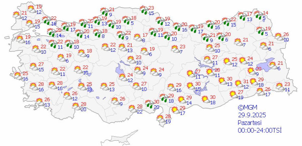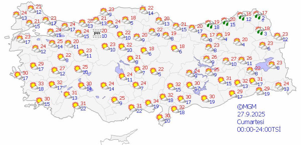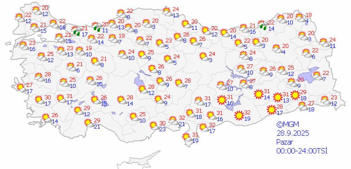 Hava sıcaklıklarının cuma gününden itibaren hissedilir derecede azalarak mevsim normallerinin 4-5 derece altına düşeceği, beklenen en düşük ve en yüksek sıcaklıkların 15-22 derece ortasında olacağı iddia ediliyor.