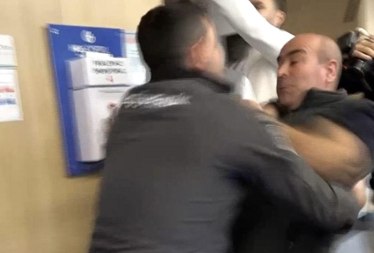 Tatbikatta yaralı yakını olan bir şahıs ise kendini role biraz fazla kaptırınca, güvenlik çalışanı şahsı zahmetle sakinleştirdi.