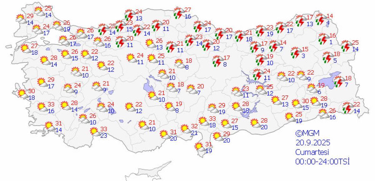 Meteoroloji Genel Müdürlüğü, yeni hava durumu raporunu yayınladı.