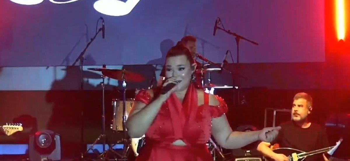 Tekirdağ’ın Saray ilçesinde konser veren ünlü sanatçı Tuğçe Kandemir, sahneye çıktığı anda istikrarını kaybederek yere düştü.